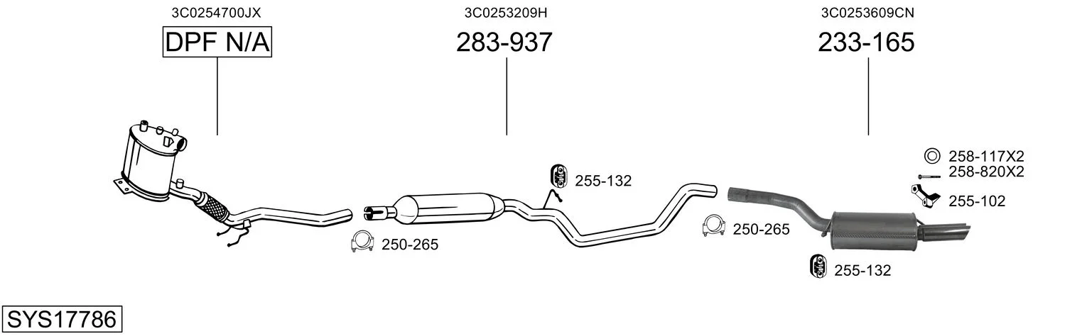 VW PASSAT B6 (3C2) 2.0 TDI - Výfukový systém - kompletní od 8/2005 do 5/2009, 1968 ccm, 120 kW, 163 hp, BUZ, limuzína