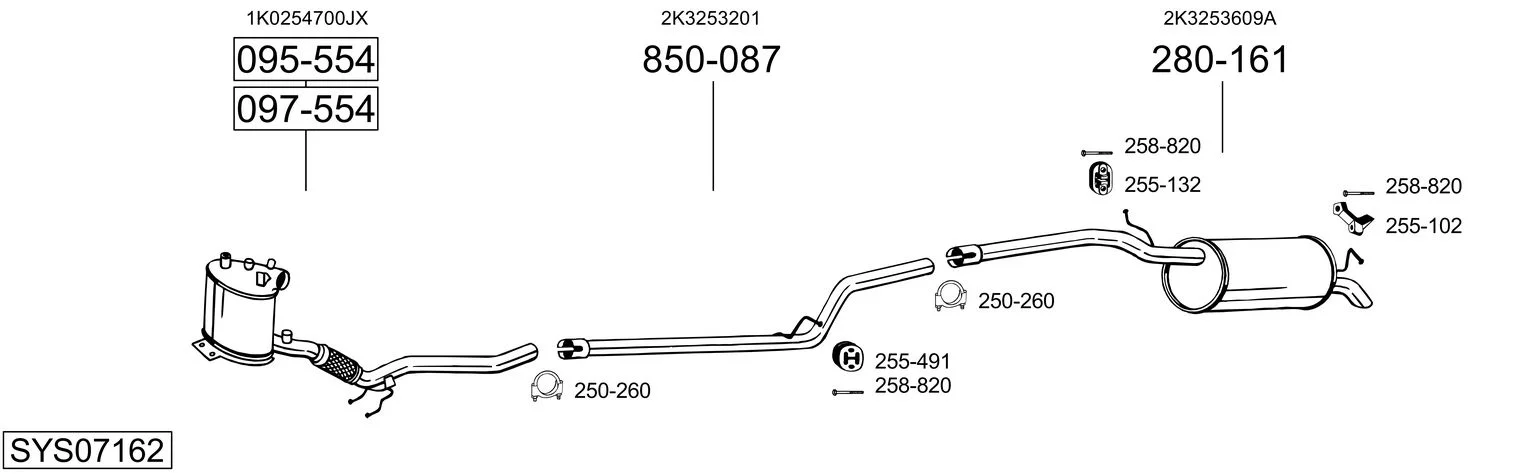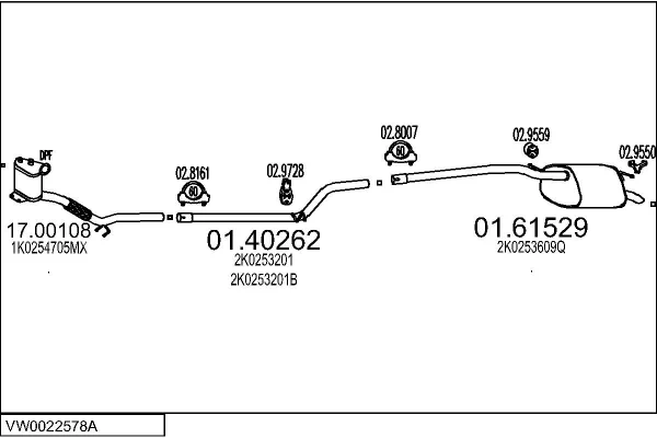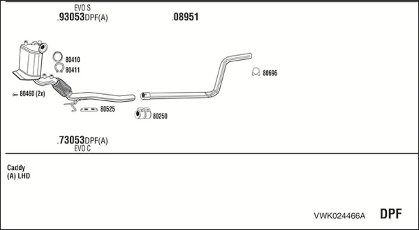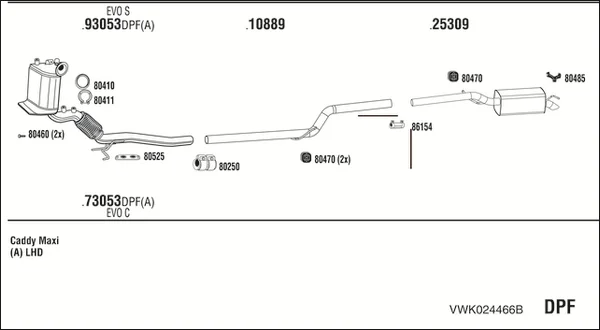 VW CADDY III velkoprostorová limuzína (2KB, 2KJ, 2CB, 2CJ) 2.0 TDI - Výfukový systém - kompletní od 9/2007 do 8/2010, 1968 ccm, 103 kW, 140 hp, BMM, velkoprostorová limuzína