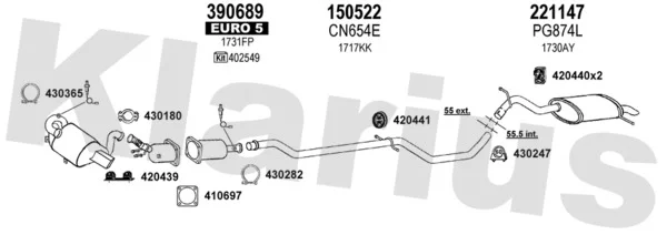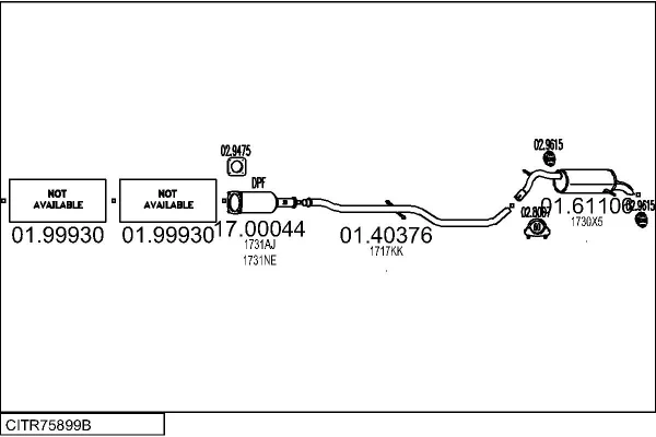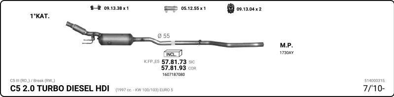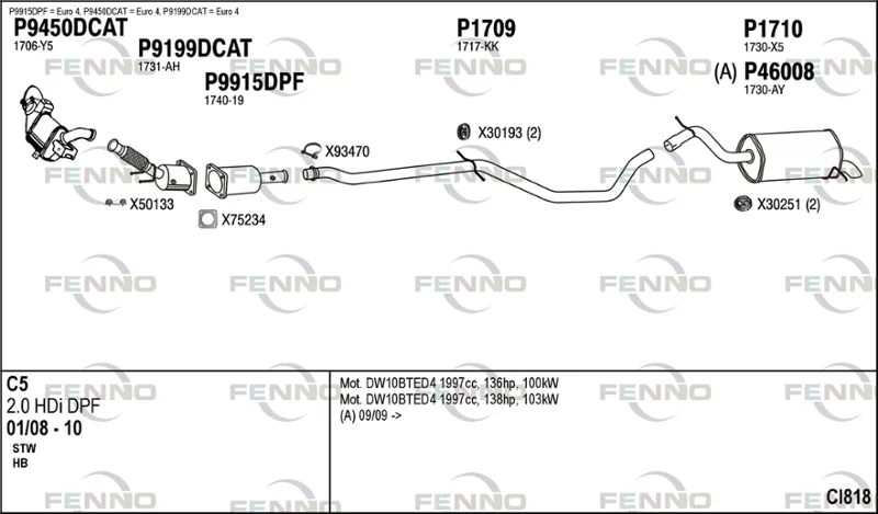 CITROËN C5 III (RD_) 2.0 HDi (RDRHD8, RDRHDJ, RDRHR8, RDRHRJ) - Výfukový systém - kompletní od 2/2008 do 6/2014, 1997 ccm, 100 kW, 136 hp, RHD (DW10CTED4), RHF (DW10BTED4), RHR (DW10BTED4), limuzína