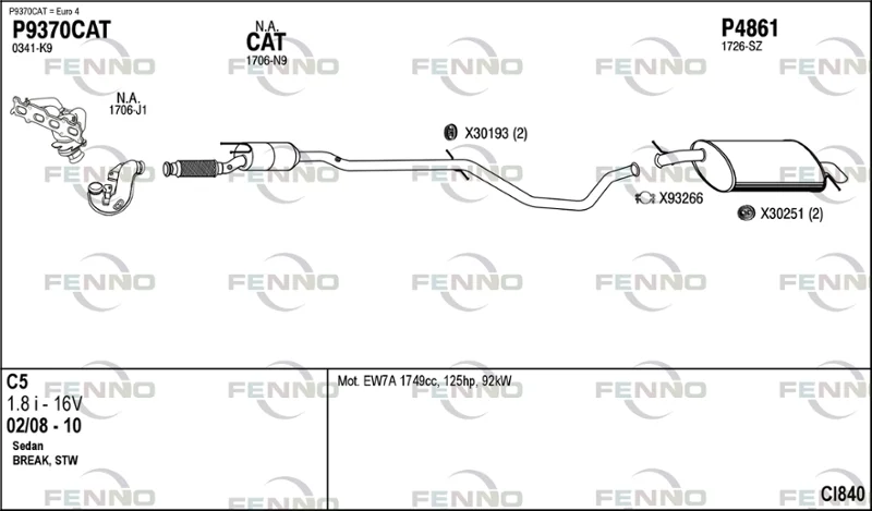 CITROËN C5 III Break (RW_) 1.8 i 16V (RW6FYC) - Výfukový systém - kompletní od 2/2008 do 10/2010, 1749 ccm, 92 kW, 125 hp, 6FY (EW7A), kombi