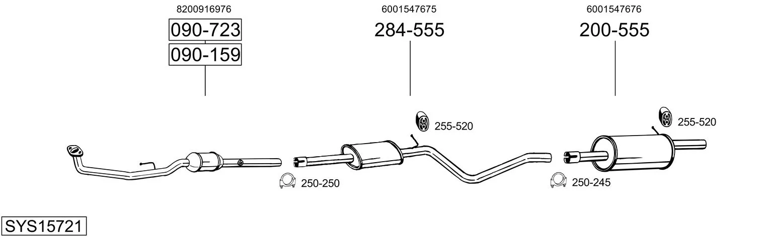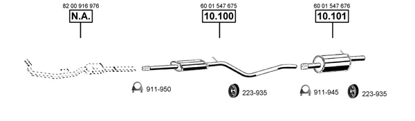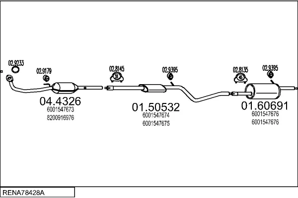 RENAULT LOGAN I (LS_) 1.6 - Výfukový systém - kompletní od 9/2004, 1598 ccm, 64 kW, 87 hp, K7M 710, limuzína