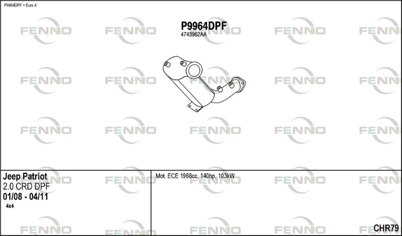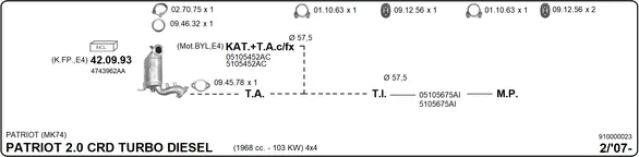 JEEP PATRIOT (MK74) 2.0 CRD 4x4 - Výfukový systém - kompletní od 2/2007 do 12/2017, 1968 ccm, 103 kW, 140 hp, ECD, ECE, uzavřený terénní vůz
