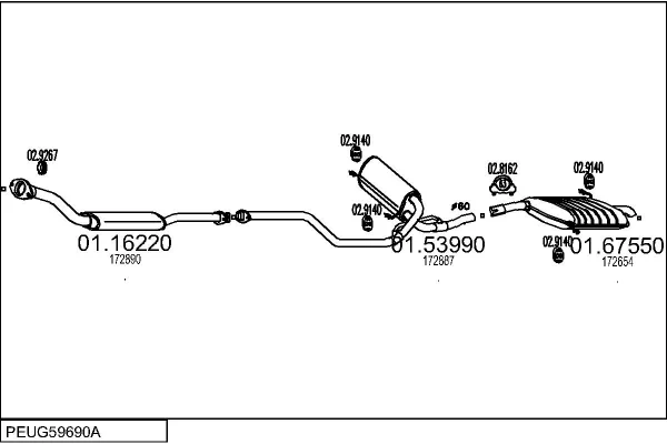 PEUGEOT 605 (6B) 2.1 Turbo Diesel - Výfukový systém - kompletní od 6/1989 do 9/1999, 2088 ccm, 80 kW, 109 hp, PHZ (XUD11ATE), limuzína