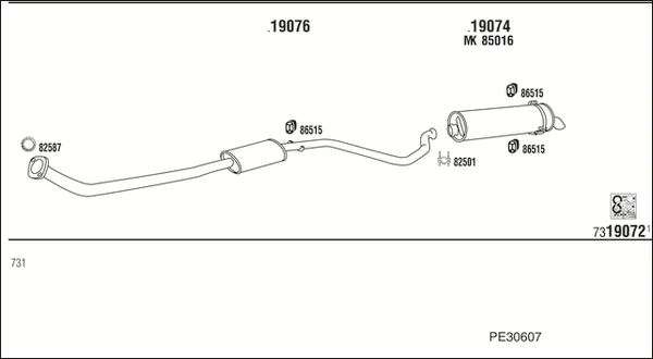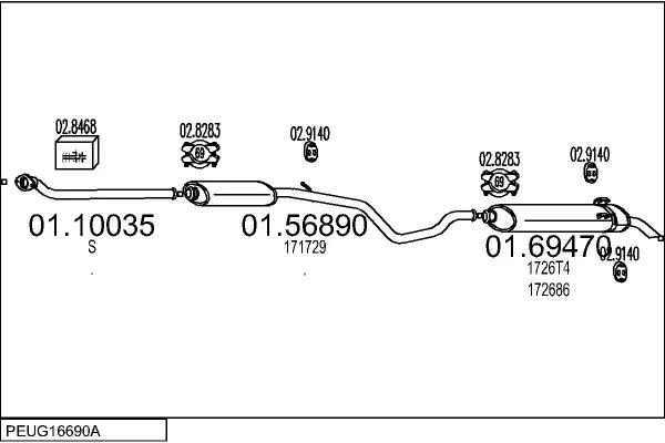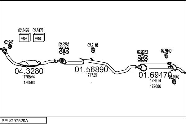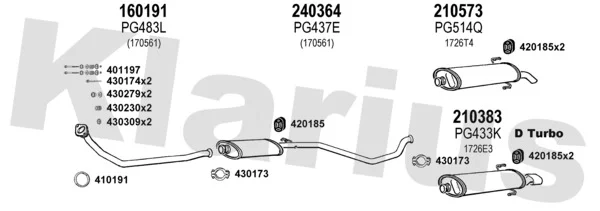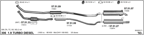 PEUGEOT 306 Šikmá zadní část (7A, 7C, N3, N5) 1.9 DT - Výfukový systém - kompletní od 5/1993 do 5/2001, 1905 ccm, 66 kW, 90 hp, DHY (XUD9TE), Šikmá zadní část