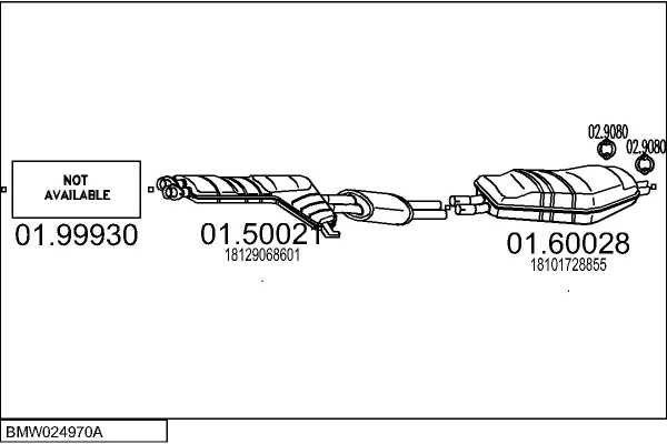 BMW 5 (E34) 540 i V8 - Výfukový systém - kompletní od 9/1992 do 12/1995, 3982 ccm, 210 kW, 286 hp, M60 B40 (408S1), limuzína