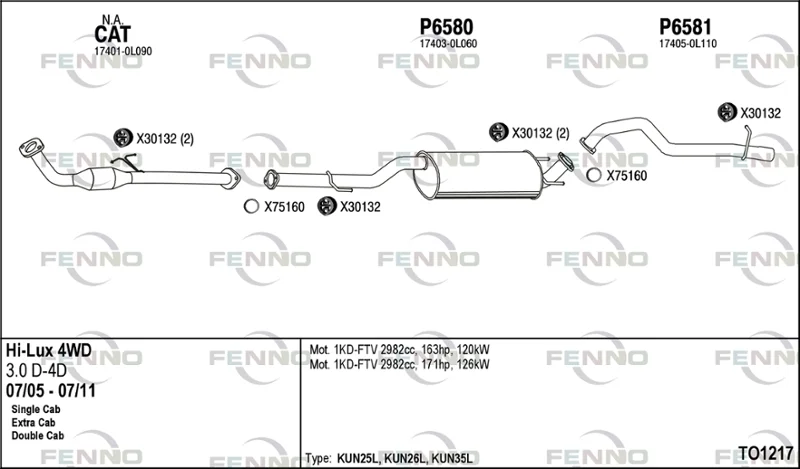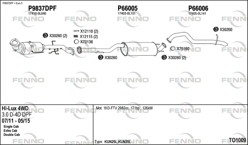 TOYOTA HILUX VII pick-up (_N1_, _N2_, _N3_) 3.0 D-4D 4WD (KUN26) - Výfukový systém - kompletní od 8/2005 do 9/2015, 2982 ccm, 126 kW, 171 hp, 1KD-FTV, pick-up