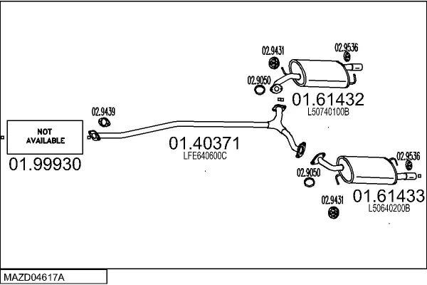 MAZDA 6 limuzína (GH) 2.0 MZR (GHEFP, GH10F) - Výfukový systém - kompletní od 8/2007 do 12/2012, 1999 ccm, 108 kW, 147 hp, LF-VE, LF4J, LF4K, LFYA, LFYB, limuzína