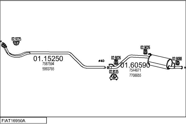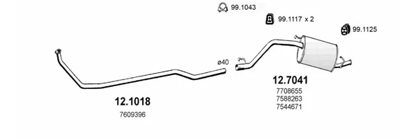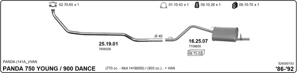 FIAT PANDA Schránky/šikmá záď (141_) 750 - Výfukový systém - kompletní od 1/1986 do 7/1992, 764 ccm, 25 kW, 34 hp, 141 B.000, Schránky/šikmá záď
