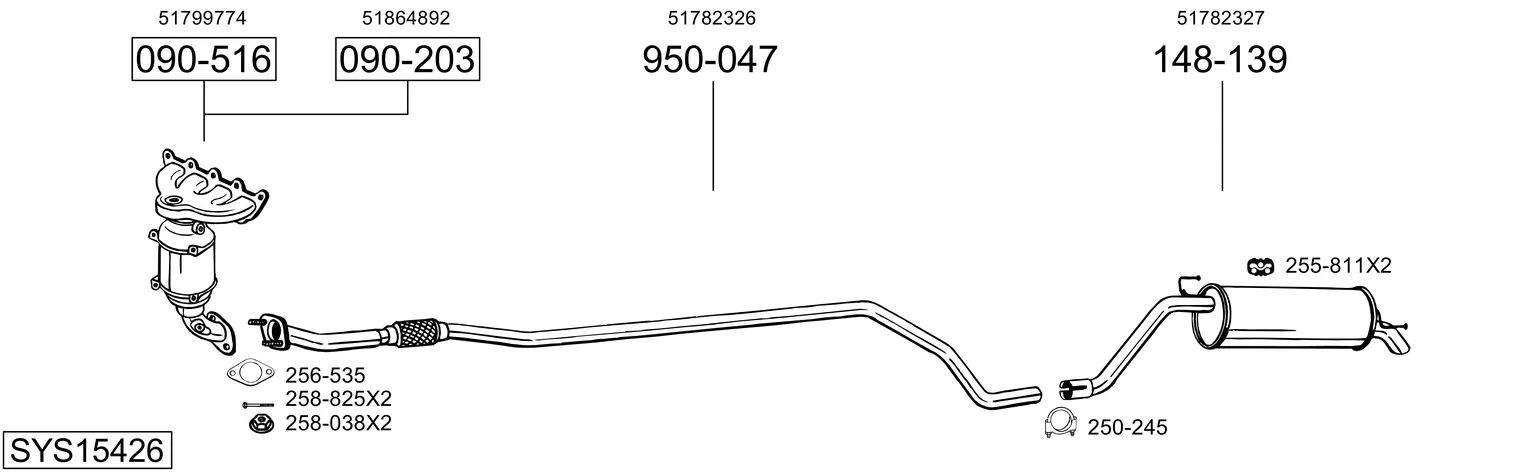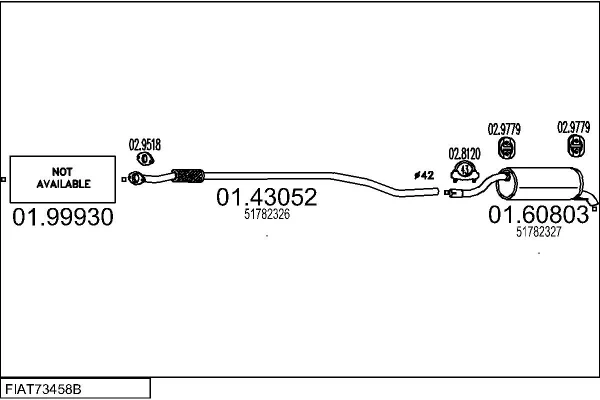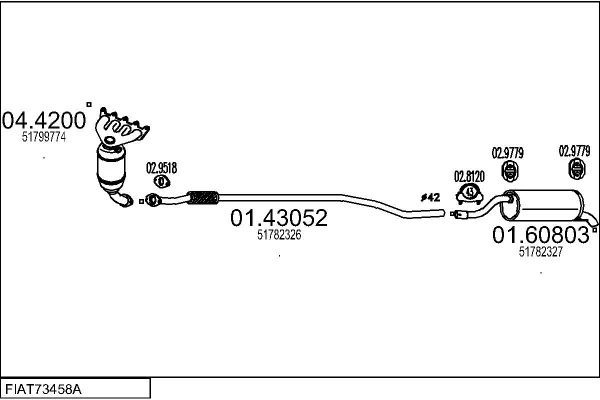 FIAT PUNTO (199_) 1.4 (199AXB1A, 199BXB1A, 199BXB11, 199AXB11) - Výfukový systém - kompletní od 3/2012, 1368 ccm, 57 kW, 78 hp, 350 A1.000, Šikmá zadní část