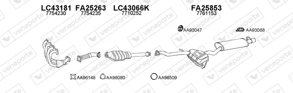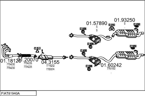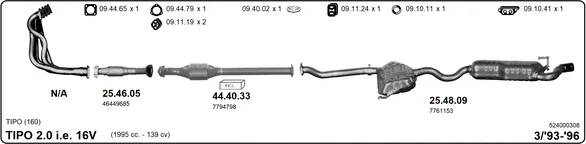 FIAT TIPO (160_) 2.0 i.e. 16V Sport (160.EF) - Výfukový systém - kompletní od 3/1993 do 4/1995, 1995 ccm, 102 kW, 139 hp, 836 A3.000, Šikmá zadní část
