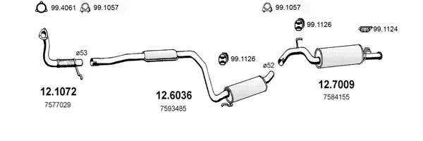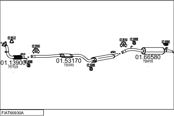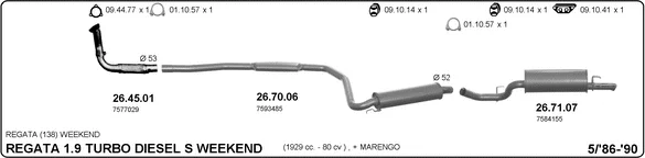 FIAT REGATA Weekend (138_) 80 Turbo Diesel 1.9 - Výfukový systém - kompletní od 5/1986 do 7/1989, 1929 ccm, 59 kW, 80 hp, 831 D1.000, kombi
