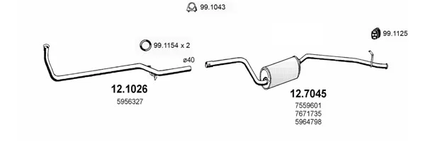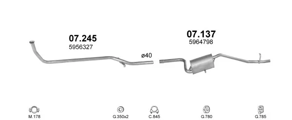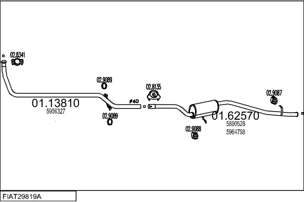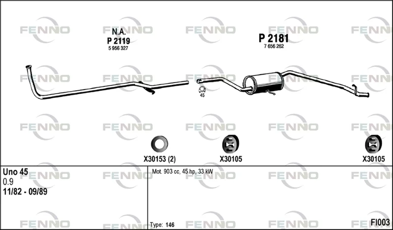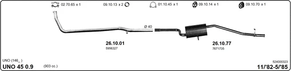 FIAT UNO (146_, 158_) 45 0.9 - Výfukový systém - kompletní od 3/1983 do 9/1992, 903 ccm, 33 kW, 45 hp, 146 A.000, 146 A1.000, Šikmá zadní část