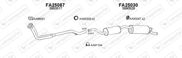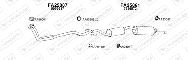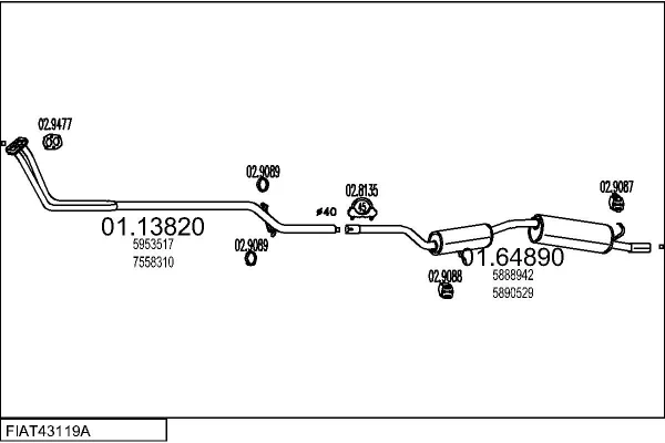 FIAT UNO (146_, 158_) 70 1.3 - Výfukový systém - kompletní od 1/1983 do 4/1985, 1302 ccm, 50 kW, 68 hp, 138 B2.000, Šikmá zadní část