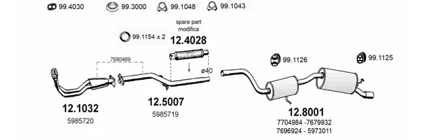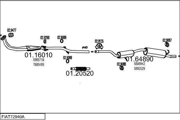 FIAT UNO (146_, 158_) 1.3 Super Diesel - Výfukový systém - kompletní od 6/1983 do 3/1992, 1302 ccm, 33 kW, 45 hp, 127 A5.000, 146 B1.000, Šikmá zadní část