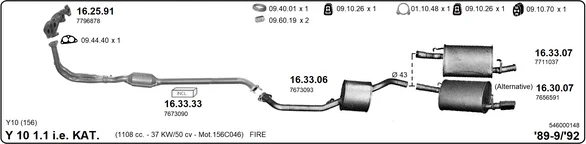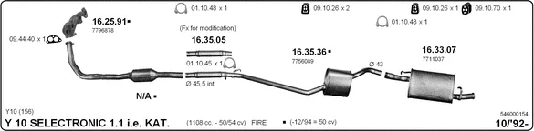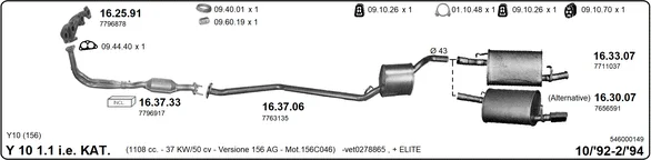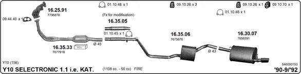 LANCIA Y10 (156_) 1.1 i.e. Fire (156AG) - Výfukový systém - kompletní od 7/1989 do 9/1995, 1108 ccm, 37 kW, 50 hp, 156 C.046, Šikmá zadní část