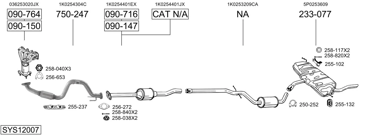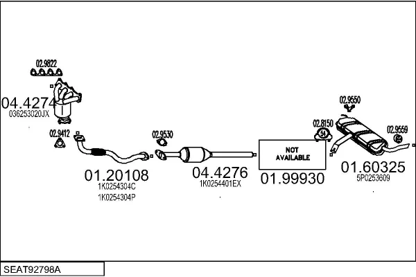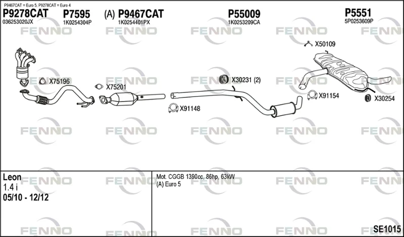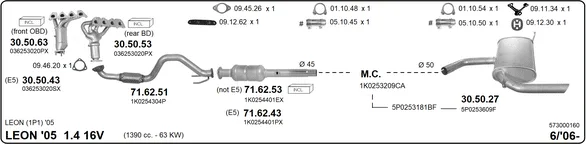 SEAT LEON (1P1) 1.4 16V - Výfukový systém - kompletní od 6/2006 do 12/2012, 1390 ccm, 63 kW, 86 hp, BXW, CGGB, Šikmá zadní část