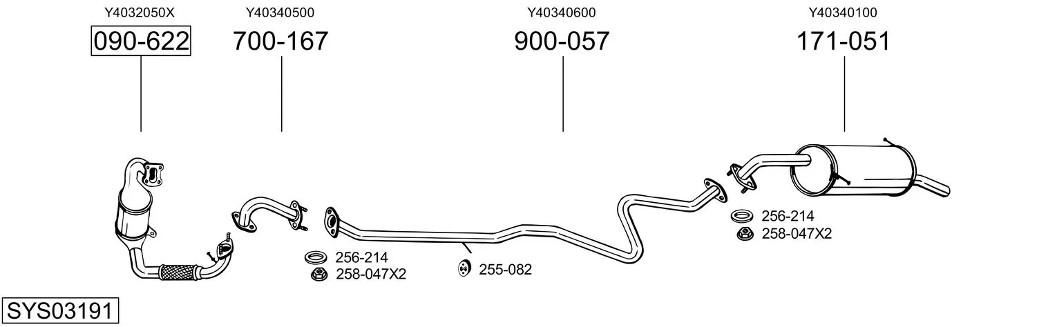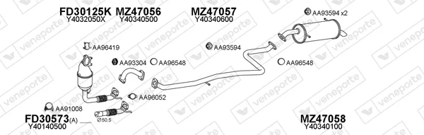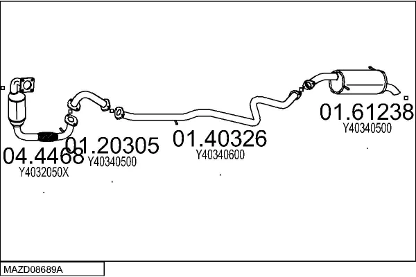 MAZDA 2 (DE_, DH_) 1.4 MZR-CD - Výfukový systém - kompletní od 1/2008 do 6/2015, 1399 ccm, 50 kW, 68 hp, Y404, Šikmá zadní část