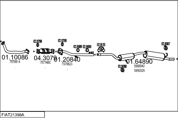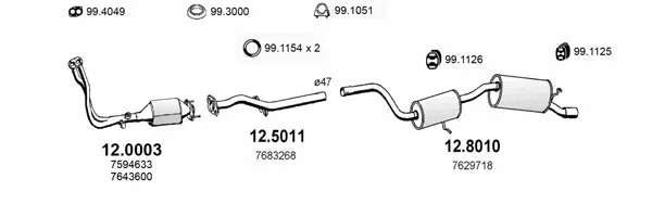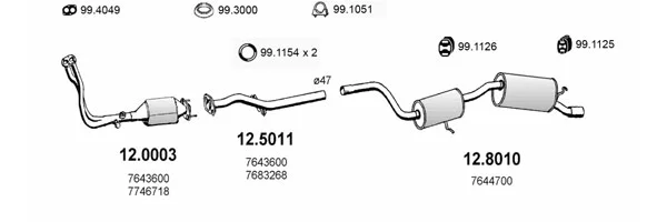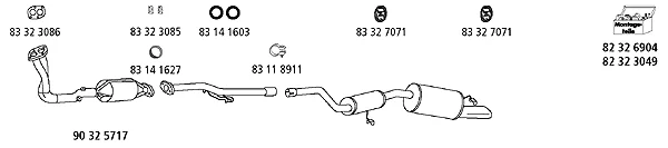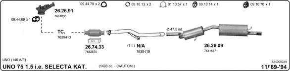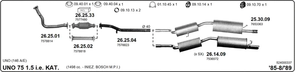 FIAT UNO (146_, 158_) 75 i.e. 1.5 - Výfukový systém - kompletní od 10/1985 do 12/1993, 1498 ccm, 55 kW, 75 hp, 138 C2.048, 149 C1.000, Šikmá zadní část