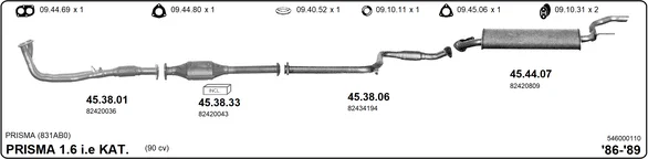 LANCIA PRISMA (831_) 1.6 i.e. Super (831AB) - Výfukový systém - kompletní od 5/1987 do 12/1989, 1585 ccm, 66 kW, 90 hp, 149 C2.000, limuzína