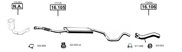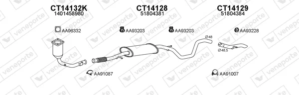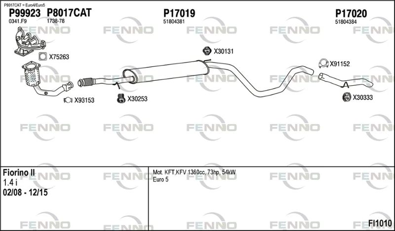 FIAT FIORINO Skříňová/velkoprostorová limuzína (225_) 1.4 (225BXA1A, 225BXF1A) - Výfukový systém - kompletní od 11/2007, 1360 ccm, 54 kW, 73 hp, KFT, KFV, Skříňová/velkoprostorová limuzína