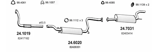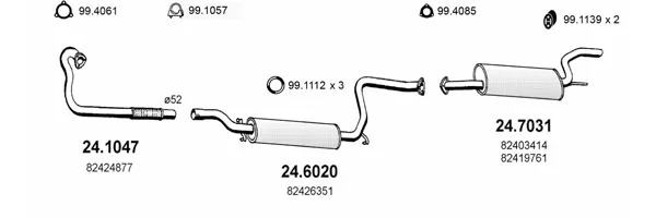 LANCIA PRISMA (831_) 1.9 Turbo Diesel (831AB) - Výfukový systém - kompletní od 5/1985 do 12/1989, 1928 ccm, 59 kW, 80 hp, 831 D1.000, limuzína