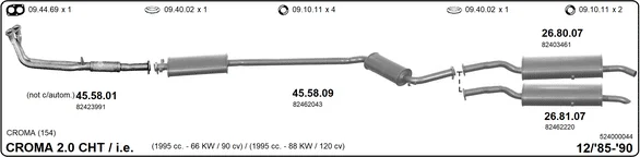 FIAT CROMA (154_) 2000 i.e. (154.AD) - Výfukový systém - kompletní od 3/1987 do 9/1992, 1995 ccm, 88 kW, 120 hp, 154 C3.000, 834 B.000, Šikmá zadní část