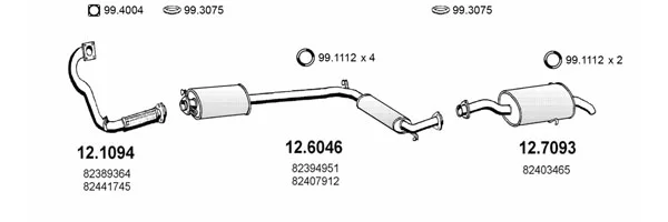 FIAT CROMA (154_) 2500 TD (154.AE) - Výfukový systém - kompletní od 12/1985 do 8/1989, 2445 ccm, 74 kW, 101 hp, 8144.91.2000, Šikmá zadní část