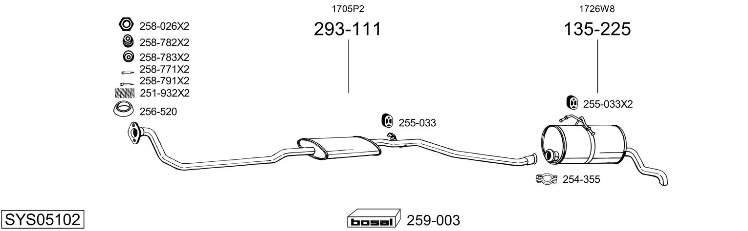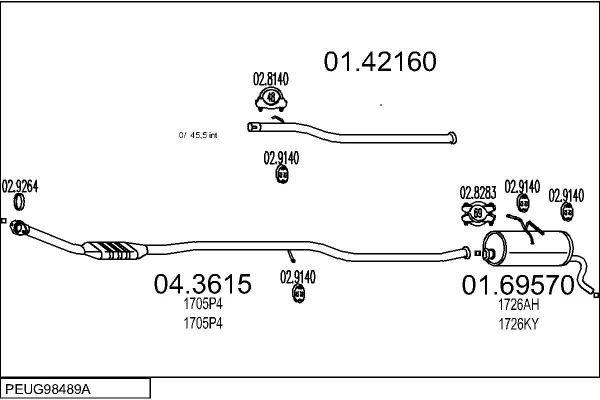 PEUGEOT PARTNER Skříňová/velkoprostorová limuzína (5_, G_) 1.9 D - Výfukový systém - kompletní od 6/1996 do 12/1998, 1905 ccm, 50 kW, 68 hp, DJY (XUD9A), Skříňová/velkoprostorová limuzína