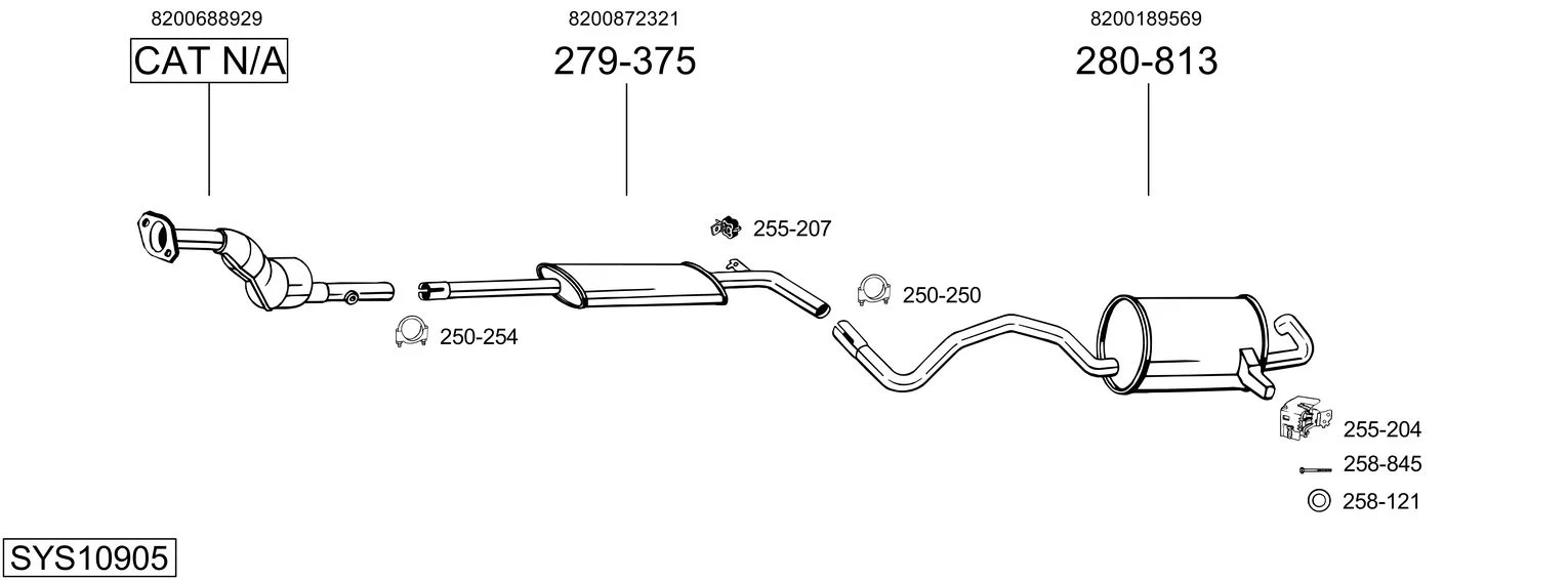 RENAULT MEGANE II kombi (KM0/1_) 1.6 16V Hi-Flex - Výfukový systém - kompletní od 2/2008 do 7/2009, 1598 ccm, 77 kW, 105 hp, K4M 856, kombi