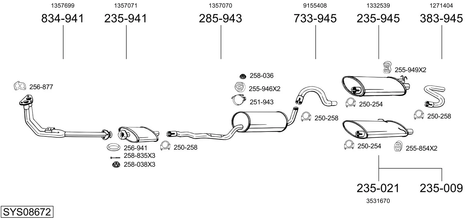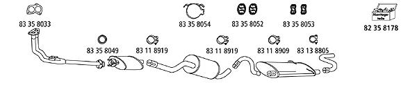 VOLVO 740 (744) 2.3 - Výfukový systém - kompletní od 8/1984 do 12/1992, 2316 ccm, 96 kW, 131 hp, B 230 E, B 230 FB, limuzína