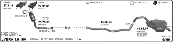 LANCIA LYBRA (839_) 1.6 - Výfukový systém - kompletní od 10/2000 do 10/2005, 1596 ccm, 76 kW, 103 hp, 182 B6.000, limuzína