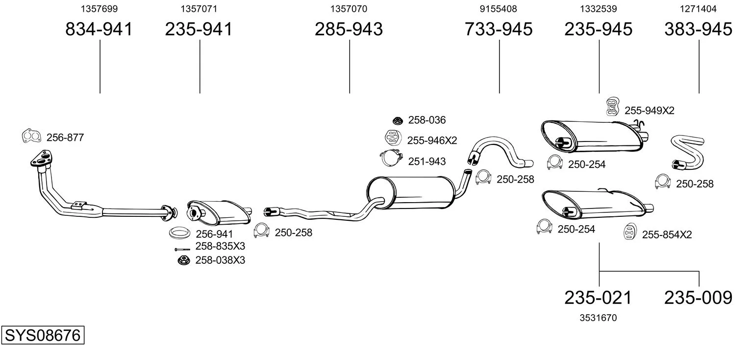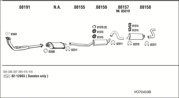 VOLVO 740 Kombi (745) 2.3 - Výfukový systém - kompletní od 8/1985 do 7/1988, 2316 ccm, 96 kW, 131 hp, B 230 E, kombi