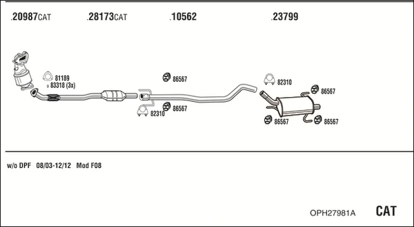 OPEL CORSA C Schránky/šikmá záď (X01) 1.7 CDTi (F08, W5L) - Výfukový systém - kompletní od 8/2003 do 12/2012, 1686 ccm, 74 kW, 101 hp, Z 17 DTH, Schránky/šikmá záď