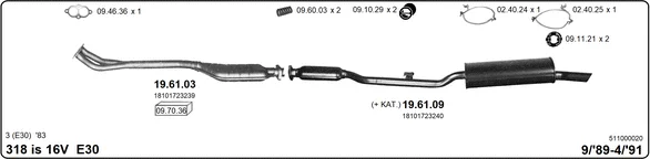 BMW 3 (E30) 318 is - Výfukový systém - kompletní od 9/1989 do 8/1991, 1796 ccm, 100 kW, 136 hp, M42 B18 (184S1), limuzína
