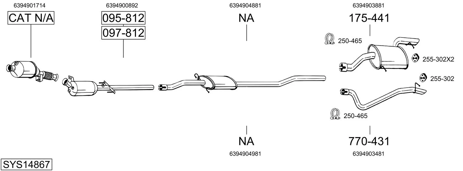MERCEDES-BENZ VITO autobus (W639) 111 CDI (639.701, 639.703, 639.705) - Výfukový systém - kompletní od 9/2007, 2148 ccm, 85 kW, 116 hp, OM 646.980, autobus