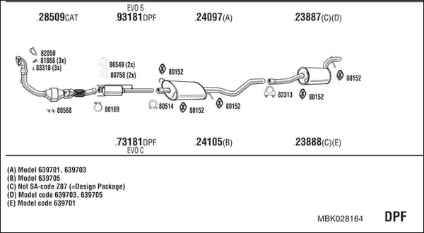 MERCEDES-BENZ VITO autobus (W639) 120 CDI (639.701, 639.703, 639.705) - Výfukový systém - kompletní od 7/2006, 2987 ccm, 150 kW, 204 hp, OM 642.990, autobus