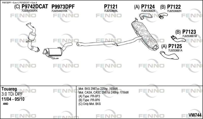 VW TOUAREG (7LA, 7L6, 7L7) 3.0 V6 TDI - Výfukový systém - kompletní