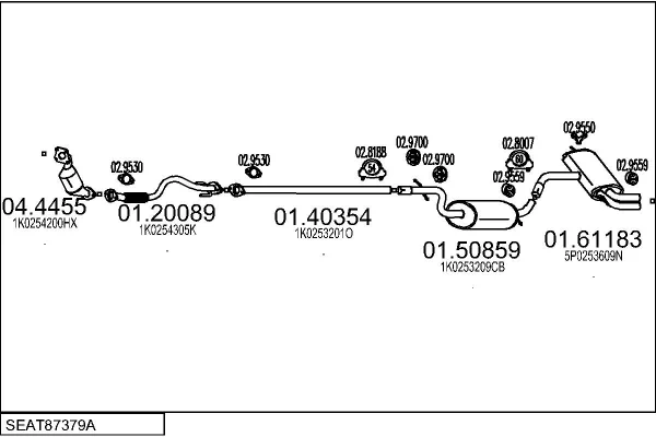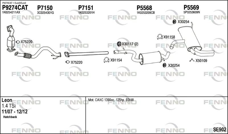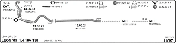 SEAT LEON (1P1) 1.4 TSI - Výfukový systém - kompletní od 11/2007 do 12/2012, 1390 ccm, 92 kW, 125 hp, CAXC, Šikmá zadní část