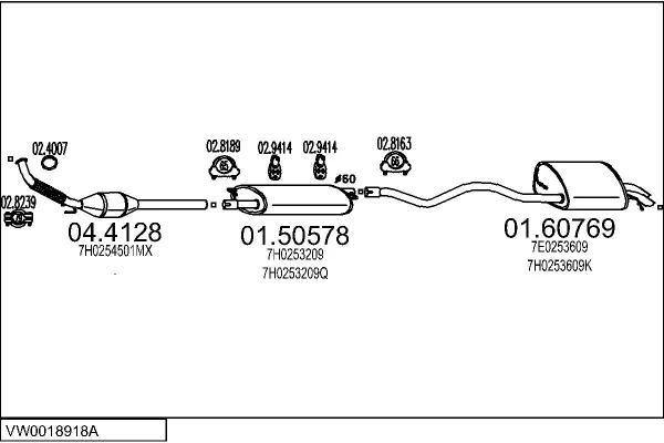 VW MULTIVAN T5 (7HM, 7HN, 7HF, 7EF, 7EM, 7EN) 2.5 TDI - Výfukový systém - kompletní od 11/2003 do 11/2009, 2461 ccm, 120 kW, 163 hp, BLJ, autobus