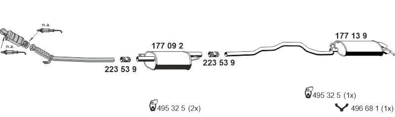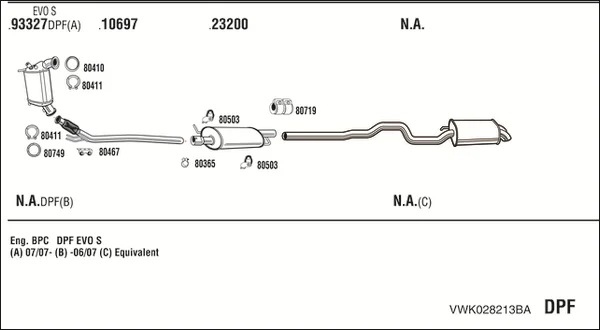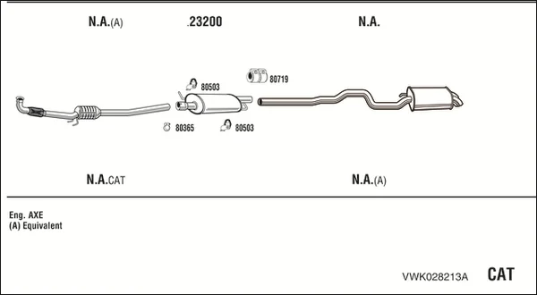 VW TRANSPORTER T5 valník/podvozek (7JD, 7JE, 7JL, 7JY, 7JZ, 7FD 2.5 TDI 4motion - Výfukový systém - kompletní od 4/2004 do 11/2009, 2461 ccm, 128 kW, 174 hp, AXE, BPC, valník/podvozek