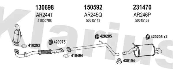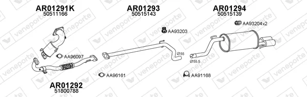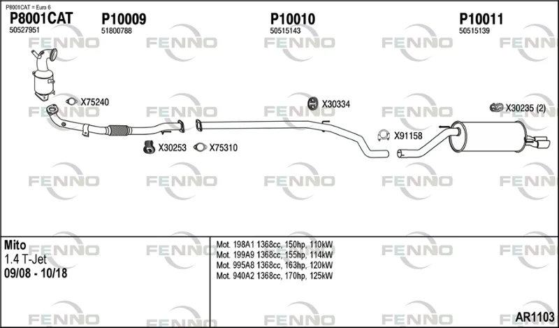 ALFA ROMEO MITO (955_) 1.4 TJet (955AXA1B) - Výfukový systém - kompletní od 8/2008 do 6/2011, 1368 ccm, 114 kW, 155 hp, 199 A8.000, Šikmá zadní část