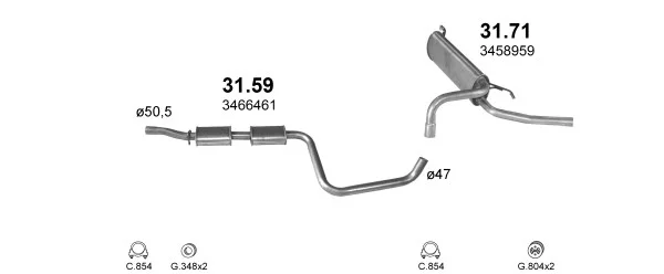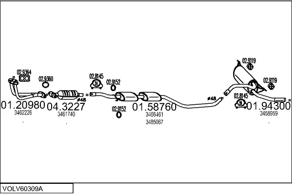 VOLVO 480 (482) 2.0 - Výfukový systém - kompletní od 8/1992 do 9/1995, 1998 ccm, 81 kW, 110 hp, B 20 F, kupé
