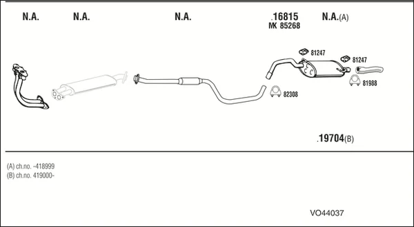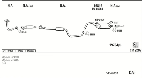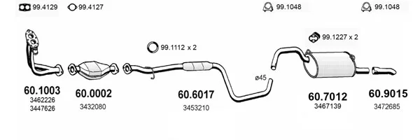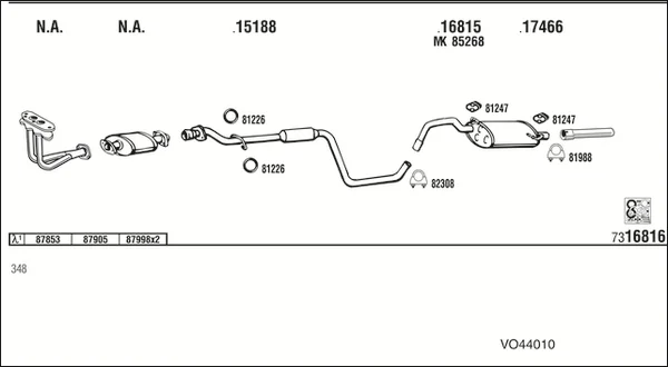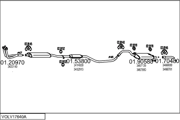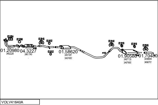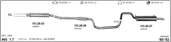 VOLVO 460 (464) 1.7 - Výfukový systém - kompletní od 8/1989 do 7/1992, 1721 ccm, 75 kW, 102 hp, B 18 EP, limuzína