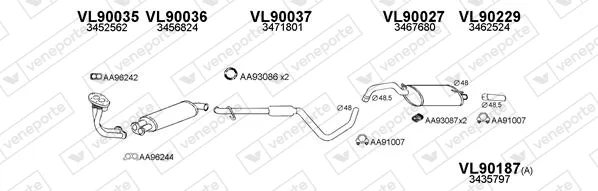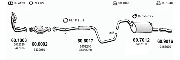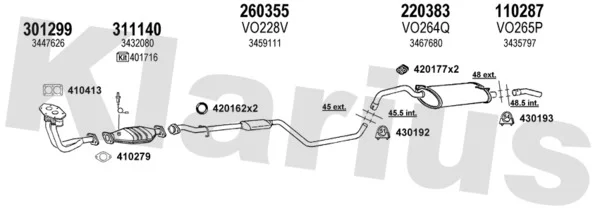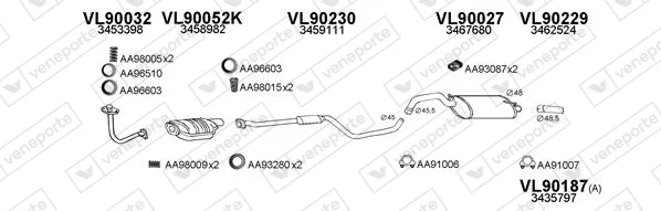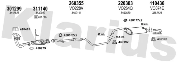 VOLVO 460 (464) 1.7 - Výfukový systém - kompletní od 8/1989 do 7/1992, 1721 ccm, 75 kW, 102 hp, B 18 EP, limuzína