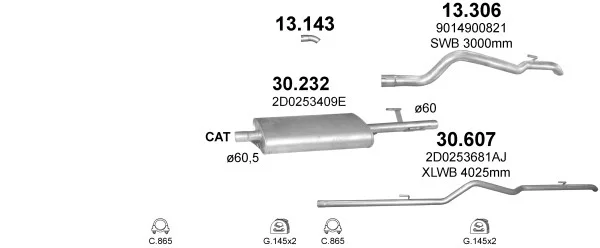 VW LT 28-35 II autobus (2DB, 2DE, 2DK) 2.8 TDI - Výfukový systém - kompletní od 7/1997 do 5/2003, 2798 ccm, 92 kW, 125 hp, AGK, autobus