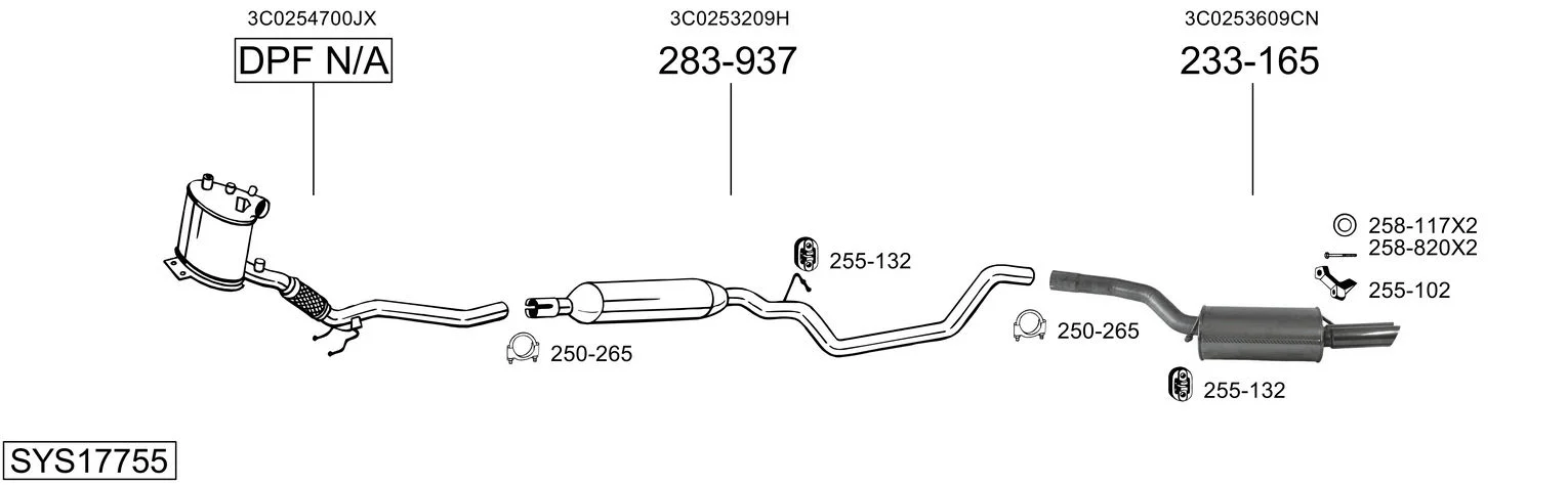 VW PASSAT B6 Variant (3C5) 2.0 TDI - Výfukový systém - kompletní od 8/2005 do 5/2009, 1968 ccm, 120 kW, 163 hp, BUZ, kombi