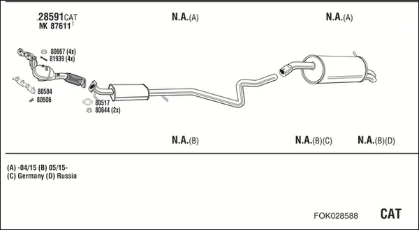 FORD FIESTA limuzína 1.6 Ti - Výfukový systém - kompletní od 4/2010 do 4/2017, 1596 ccm, 88 kW, 120 hp, HXJA, HXJB, HXJE, limuzína