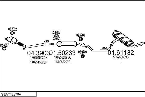 SEAT TOLEDO III (5P2) 2.0 TDI - Výfukový systém - kompletní od 9/2004 do 5/2009, 1968 ccm, 100 kW, 136 hp, AZV, velkoprostorová limuzína