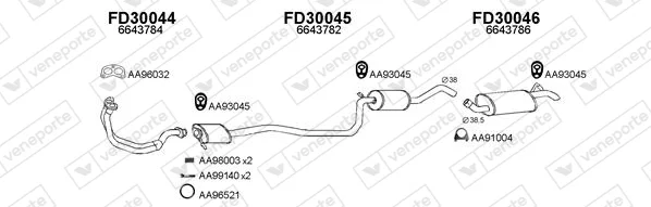 FORD FIESTA III (GFJ) 1.3 - Výfukový systém - kompletní od 3/1989 do 12/1995, 1299 ccm, 44 kW, 60 hp, JBB, JBC, Šikmá zadní část