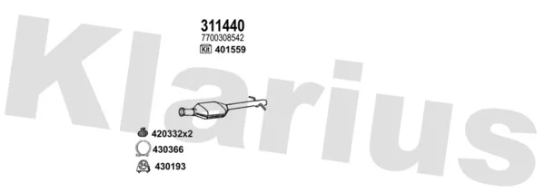 RENAULT KANGOO Express (FC0/1_) 1.9 D (FC0J) - Výfukový systém - kompletní od 9/1999 do 6/2003, 1870 ccm, 48 kW, 65 hp, F8Q 632, Skříňová/velkoprostorová limuzína